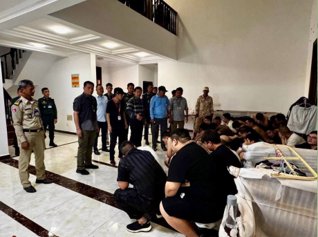 昨天,根据省长芒辛内阁下的命令,西哈努克省联合指挥部在省副省长敏肯帕先生的领导下,在省法院副检察官蔡索特拉先生的协调下,对西哈努克省磅逊市里姆分区翁村的Borey Silong Be地区开展了打击网络诈骗和非法外国人入境的行动。